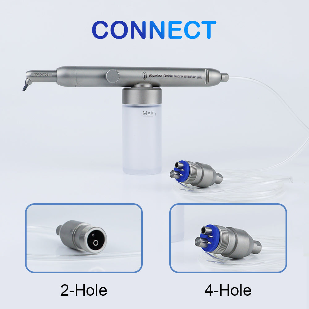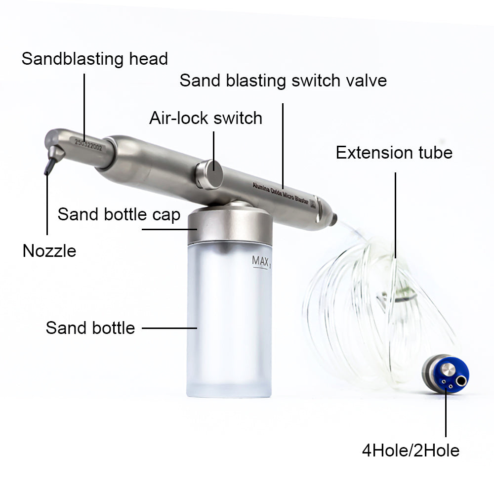 Complete dental sandblasting system for surface preparation and bonding enhancement in restorative procedures.
